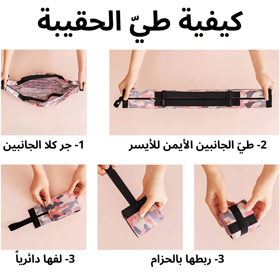 محمولة وقابلة للطي: يمكن طي حقيبة التسوق ولفها بسهولة إلى حجم صغير لسهولة التخزين وحملها في أي وقت. يمكنك تخزينها بسهولة في الجيب أو المحفظة لتوفير المساحة. اجعل رحلة التسوق الخاصة بك سهلة وممتعة