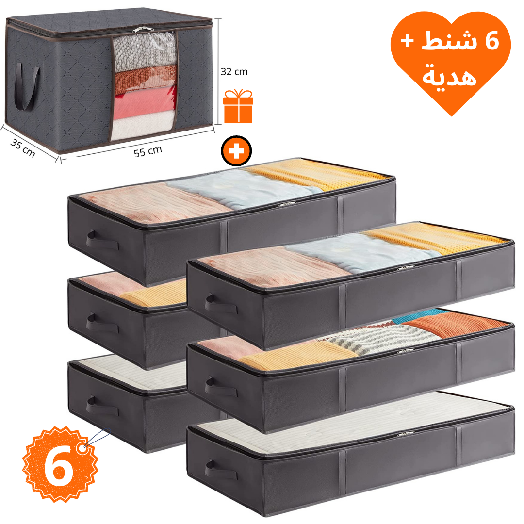 شنط تخزين تحت السرير قابلة للطي للملابس والبطانيات، مجموعة من 6 شنط + شنطة مربعة هدية