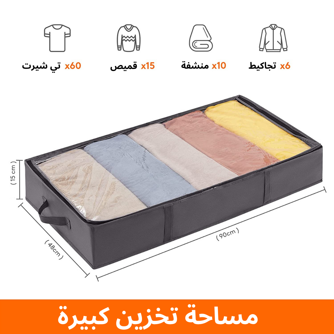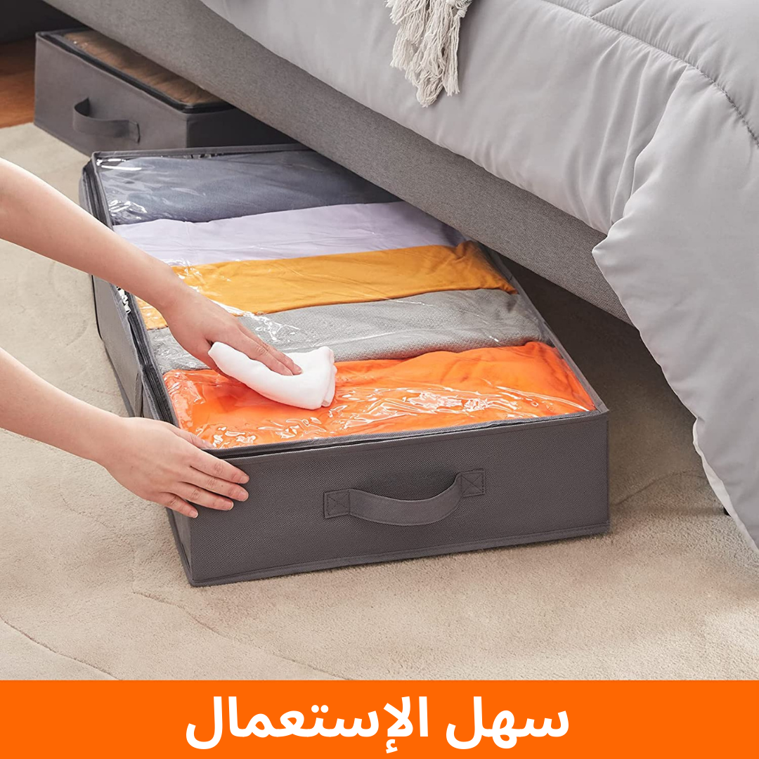 متعددة الاستخدامات: رائعة لتخزين الملابس الموسمية والسترات والألحفة والبطانيات والوسائد وغيرها من الفراش ، يُخزن أسفل السرير، في خزانة الملابس ويمكن طيه بسهولة للتخزين بعيدًا عند عدم الاستخدام