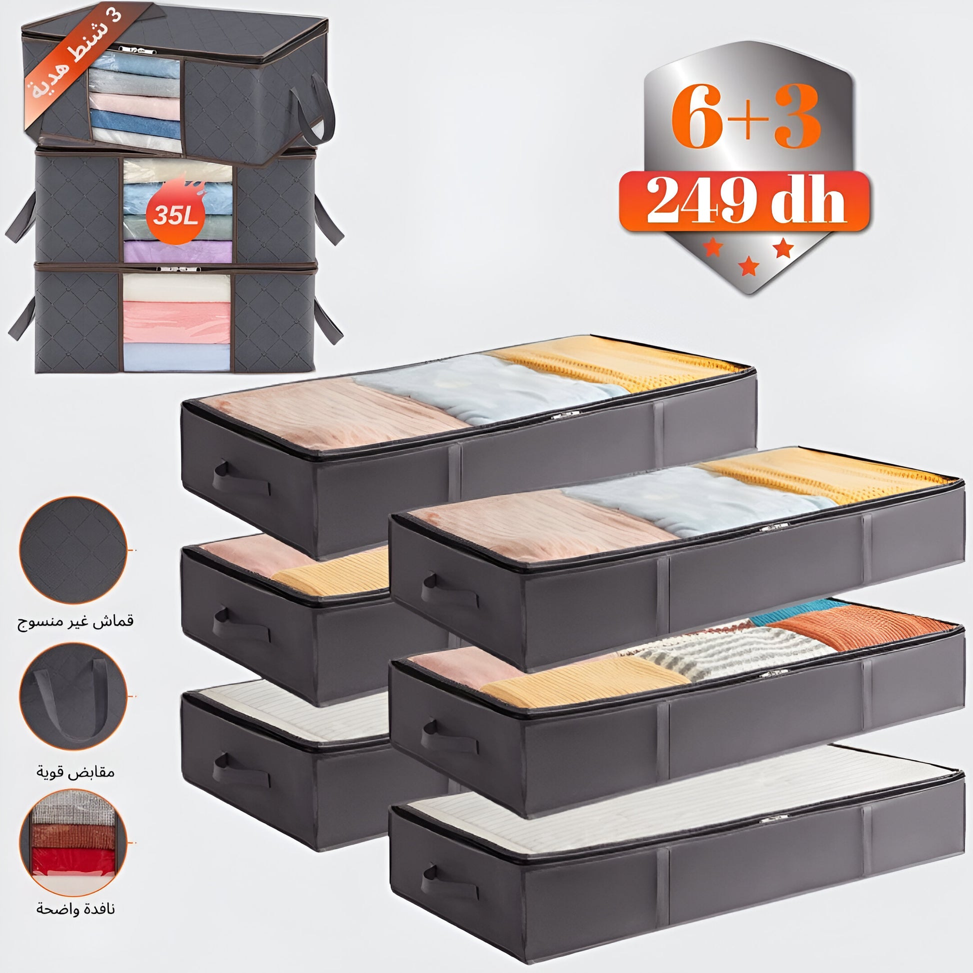 شنط تخزين تحت السرير قابلة للطي للملابس والبطانيات، مجموعة من 6 شنط + 3 شنطة هدية