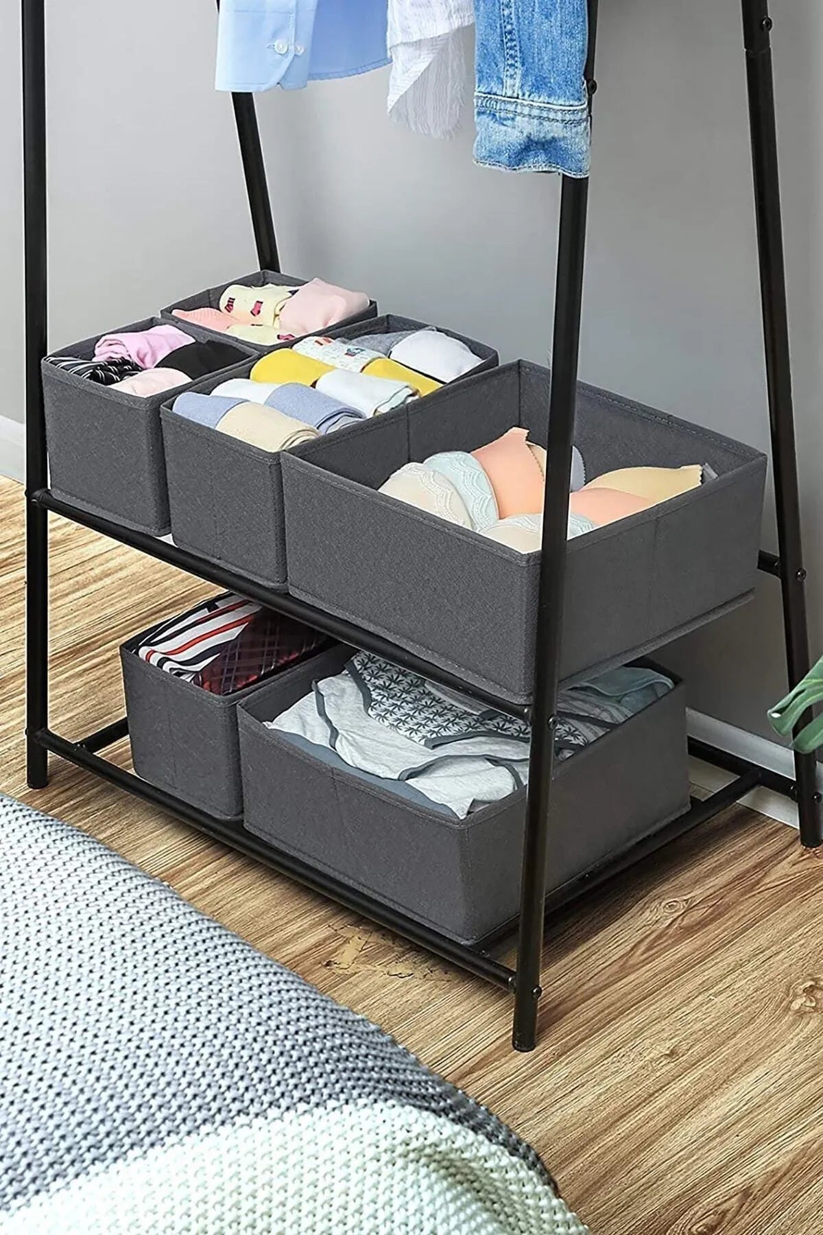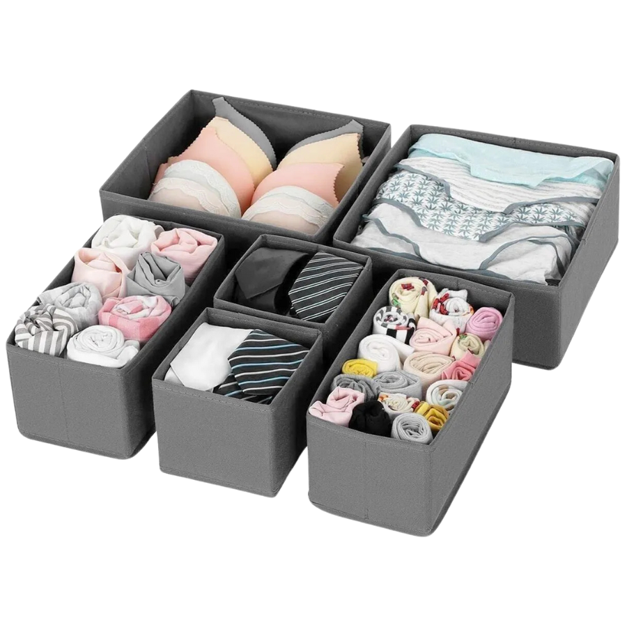 نظّم ملابسك الداخلية، الجوارب، وربطات العنق بسهولة مع صناديق التخزين القماشية العملية. تصميم متين وخفيف، يوفر لك المساحة ويحافظ على أغراضك مرتبة وأنيقة في كل وقت