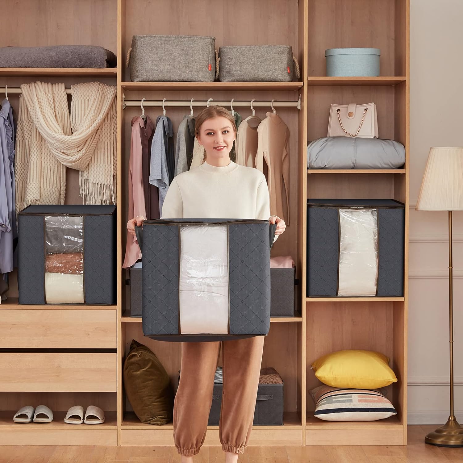 تصميم شفاف: من السهل العثور على الأشياء وتحديد العناصر المخزنة بسرعة، وفرز العناصر مثل الملابس خارج الموسم، والفراش