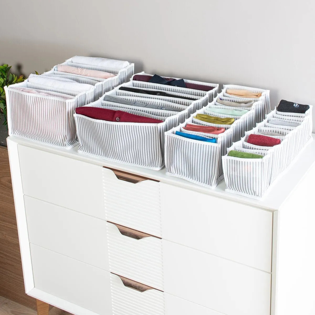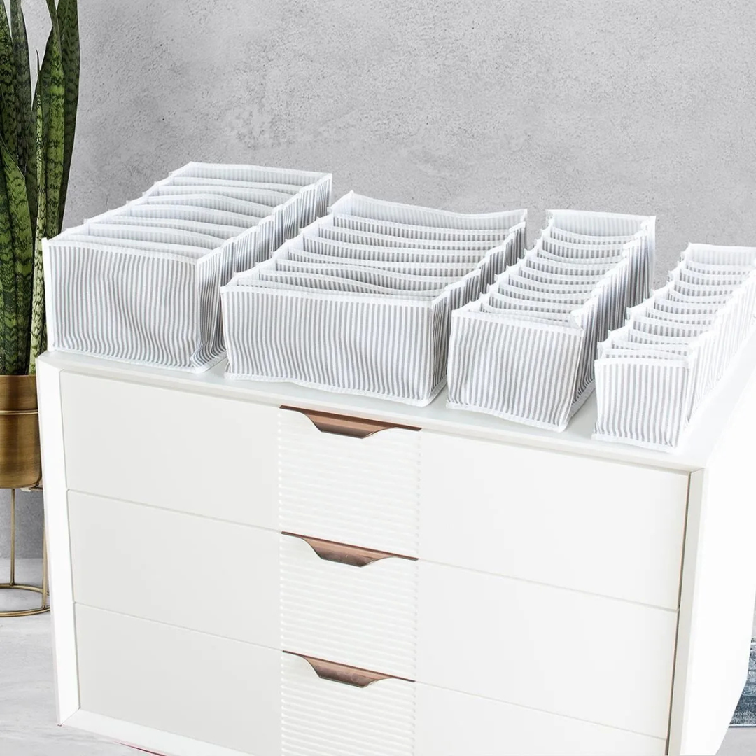 يُسهل عليك هذا الطقم تنظيم الملابس الداخلية، الجوارب، القمصان، أو حتى الإكسسوارات بطريقة ذكية ومرتبة